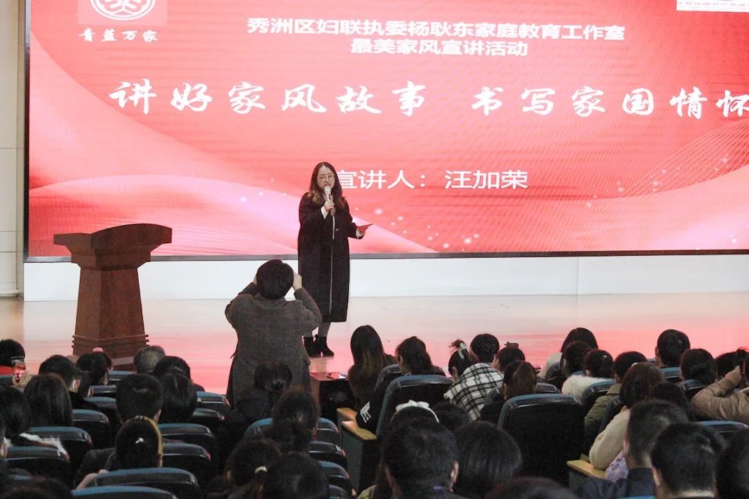 讲家风接着,秀洲区德育学科带头人,来自麟湖小学的汪家荣老师讲述了自己的家风故事。好家风如阳光,温暖灿烂,让我们知礼仪懂感恩,家风是我们每个人的一面镜子。正如汪老师所说,我们将学习这粒种子种在了孩子们的生命里,融入了孩子们血液里,只要有阳光,只要有温暖,这粒种子便可以从书本中,从社会中汲取足够多的营养,长成参天大树,花繁叶茂。