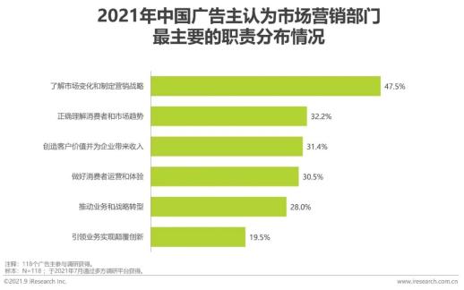 经济下行的环境让广告主对于市场环境和消费者心理变化的洞察持续保持敏锐。在关于市场营销部门职责的看法上,广告主认为最主要的是“了解市场变化和制定营销战略” 和“正确理解消费者和市场趋势”,这一数据也与广告主对于市场营销部门需要提升的能力产生对应,在后一问题上“洞察营销趋势和提出有效策略的能力”和“消费者数据处理和分析能力”排在首位。这一方面反映出广告主对于市场环境和消费者洞察的高度关注,另一方面也说明作为市场营销核心职责的市场洞察和消费者数据分析的能力对在大多数企业还处于有待提升的状态,进步的空间和潜力还非常大。
