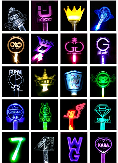 比如BigBang,粉丝名“VIP”,应援物皇冠灯、黑白色头巾;少女时代,粉丝名“sone”,应援色粉色;东方神起,粉丝名“Cassiopeia”,应援色珍珠红。