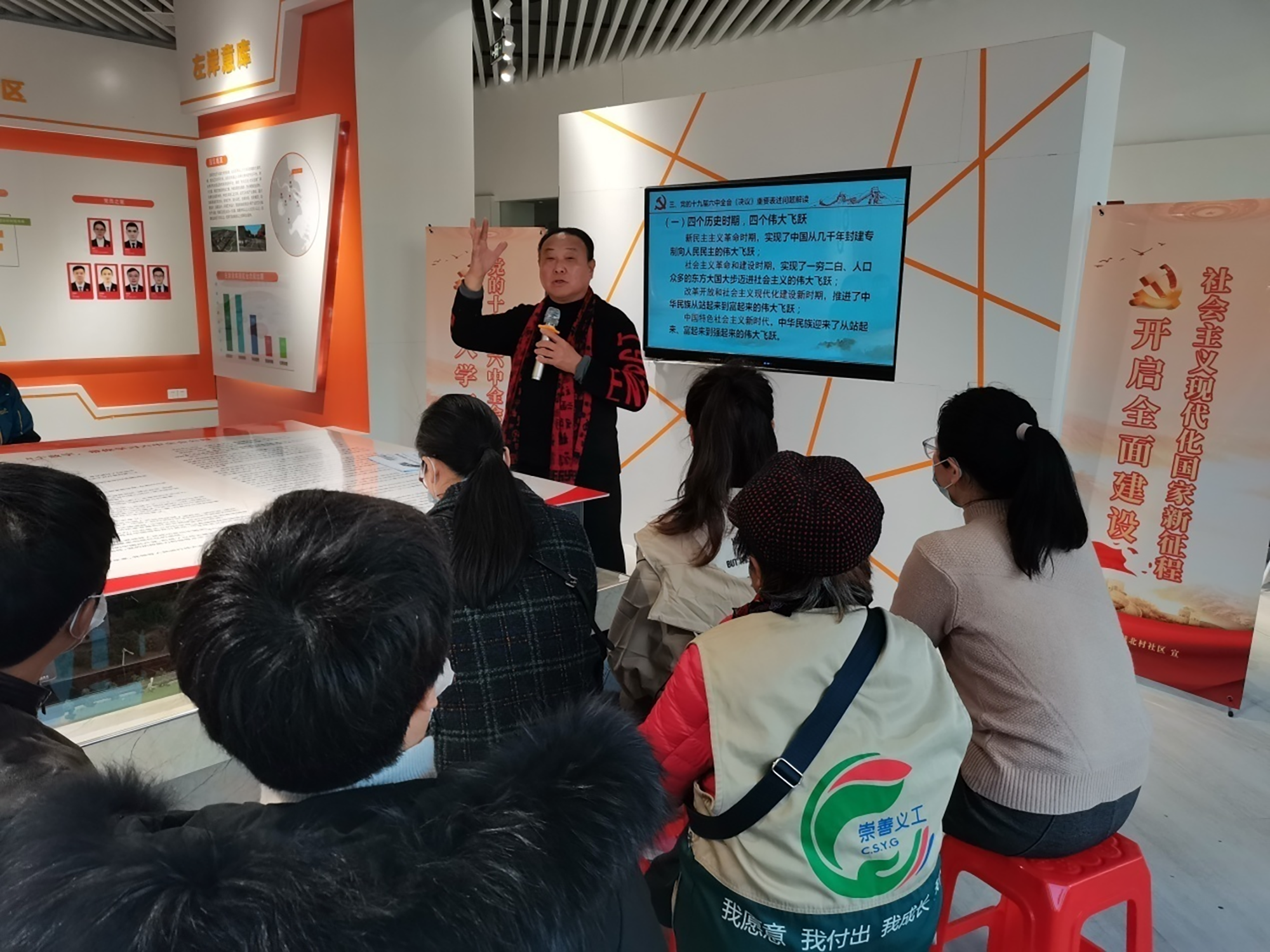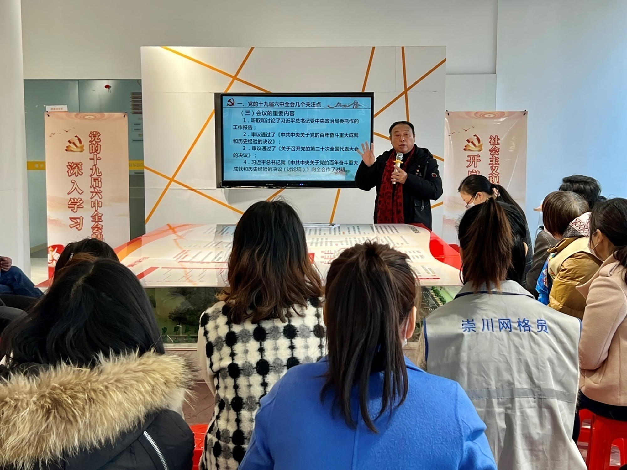历史川流不息,精神代代相传。近日,南通市老干部宣讲团成员、“百姓名嘴”陈军受邀走进南通博济左岸意库园区“白领驿站”,以“拉家常”的方式对党的十九届六中全会精神进行阐释,用生动鲜活的语言传递好党的声音,让党的理论在基层落地生根。南通市崇川区钟秀街道城北村社区、新桥村社区经济股份合作社的党员、网格员、退役军人代表,南通革命纪念馆的党员代表,园区企业职工代表及社会组织代表约50余人参加了此次活动。