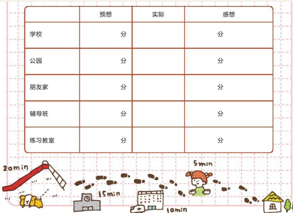 6.学会计算时间,带孩子找到时间都去哪儿了?父母可以让孩子估算一下,自己做的事儿,大概会花费多少时间。