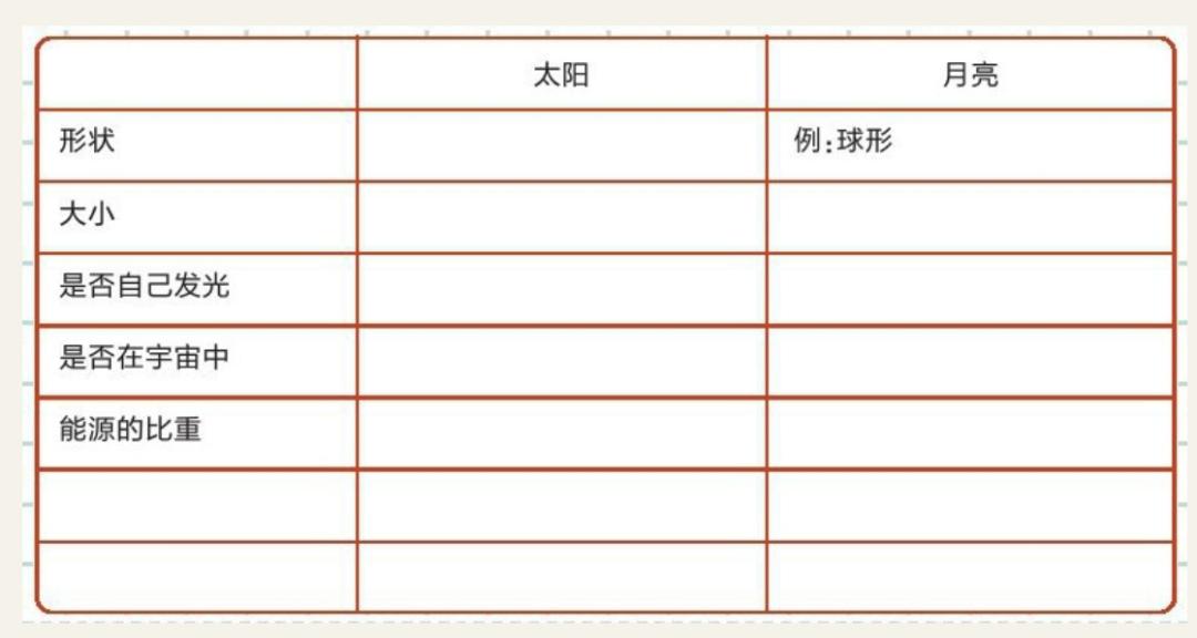 除了简单分类之外,还可以让孩子对同一类的两个东西进行比较。比如,利用图示法进行比较: