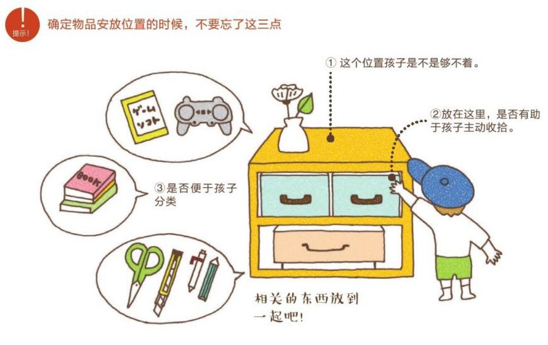 2. 制造适合孩子整理的环境在整理前,如果能做好相应的准备,整理的时候就能做到事半功倍、不费力气。也就是说,整理前首先要塑造一个易于整理的环境。