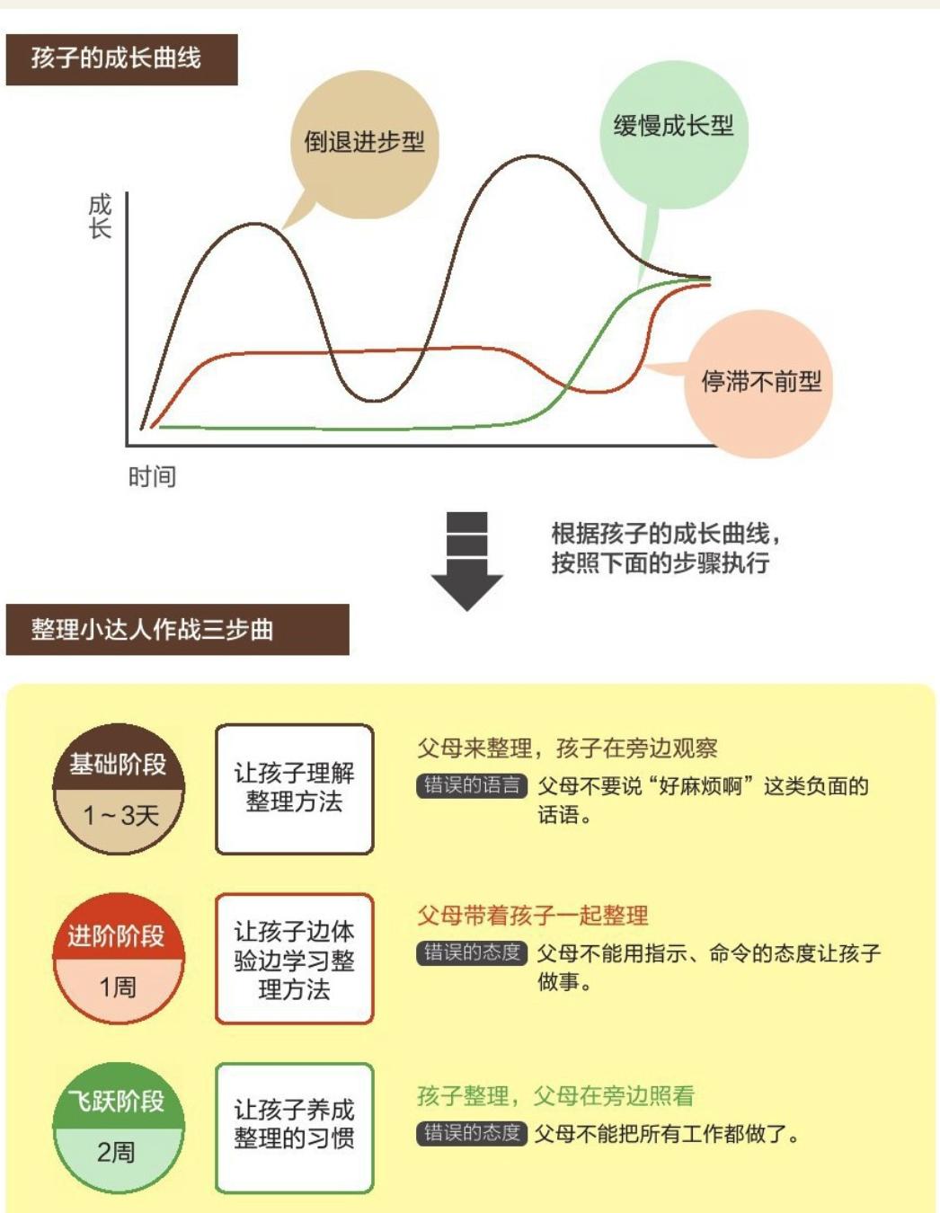 飞跃阶段(2周)由孩子自己整理,父母在旁边看着孩子整理。