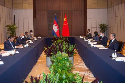双方就共同推进中国东盟关系交换意见。王毅表示,中方高度重视并全力支持柬埔寨担任2022年东盟轮值主席国,愿与柬方和东盟国家一道,助力东盟加快推进一体化进程。中方赞赏柬方积极支持全球发展倡议,双方要充分运用联合国和区域组织资源,共同推动倡议落地。中方赞赏柬方为核准区域全面经济伙伴关系协定所作努力,愿共同推动早日实现地区国家全覆盖。双方要抓紧制定澜湄合作五年行动计划,加快建设澜湄流域经济发展带。布拉索昆完全赞同,表示愿共同建设东盟中国和平、安宁、繁荣、美丽和友好家园。