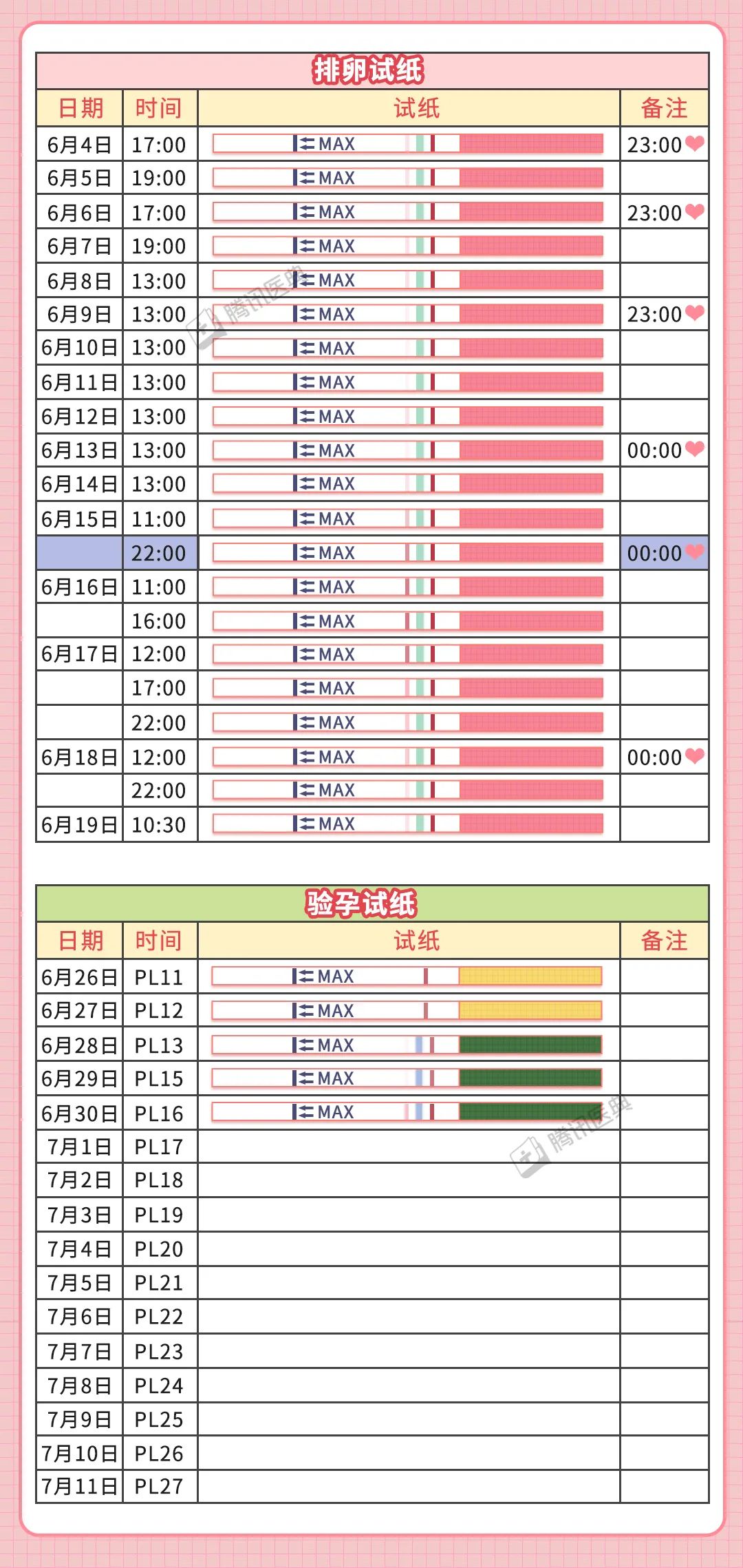 3.姨妈结束后第三天,开始验尿,用排卵试纸检测排卵情况,把试纸粘在本子上或者拍照对比。