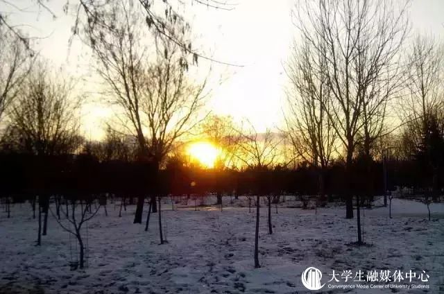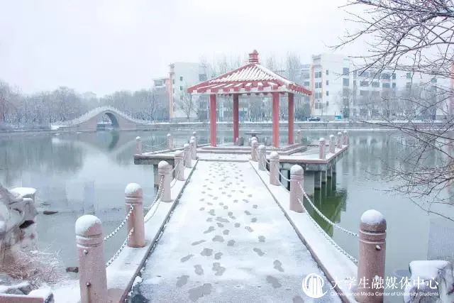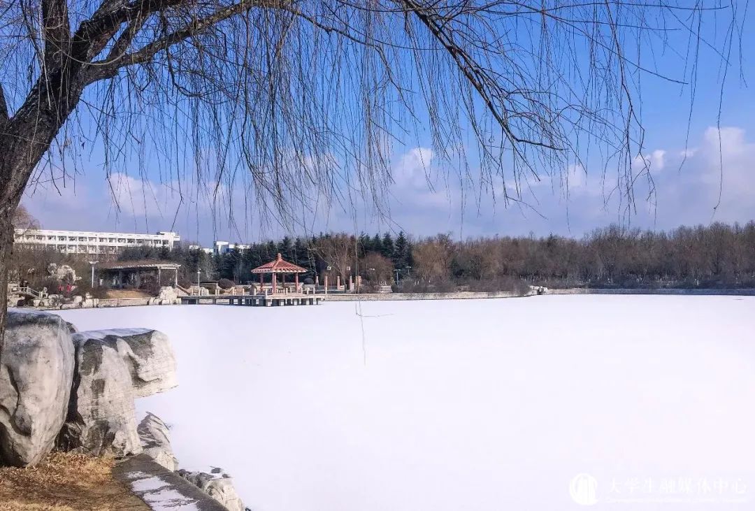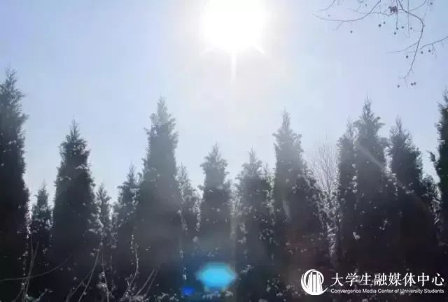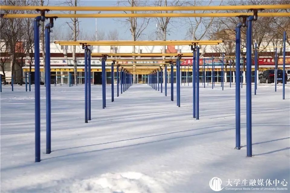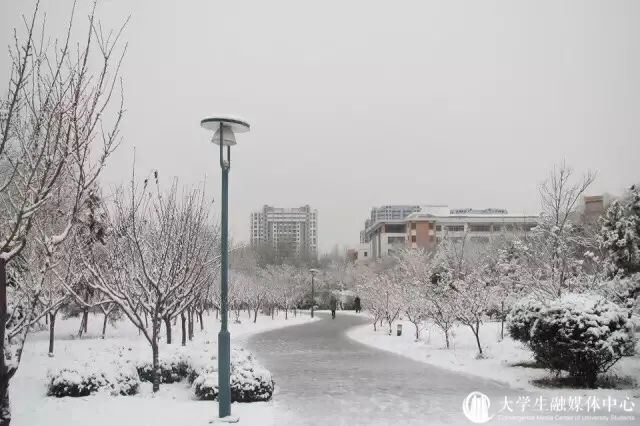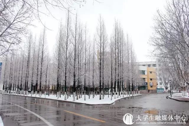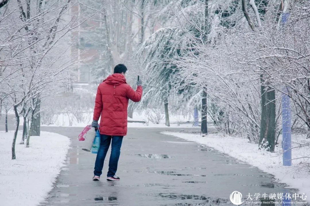 沉醉在冰雪晶莹的校园中