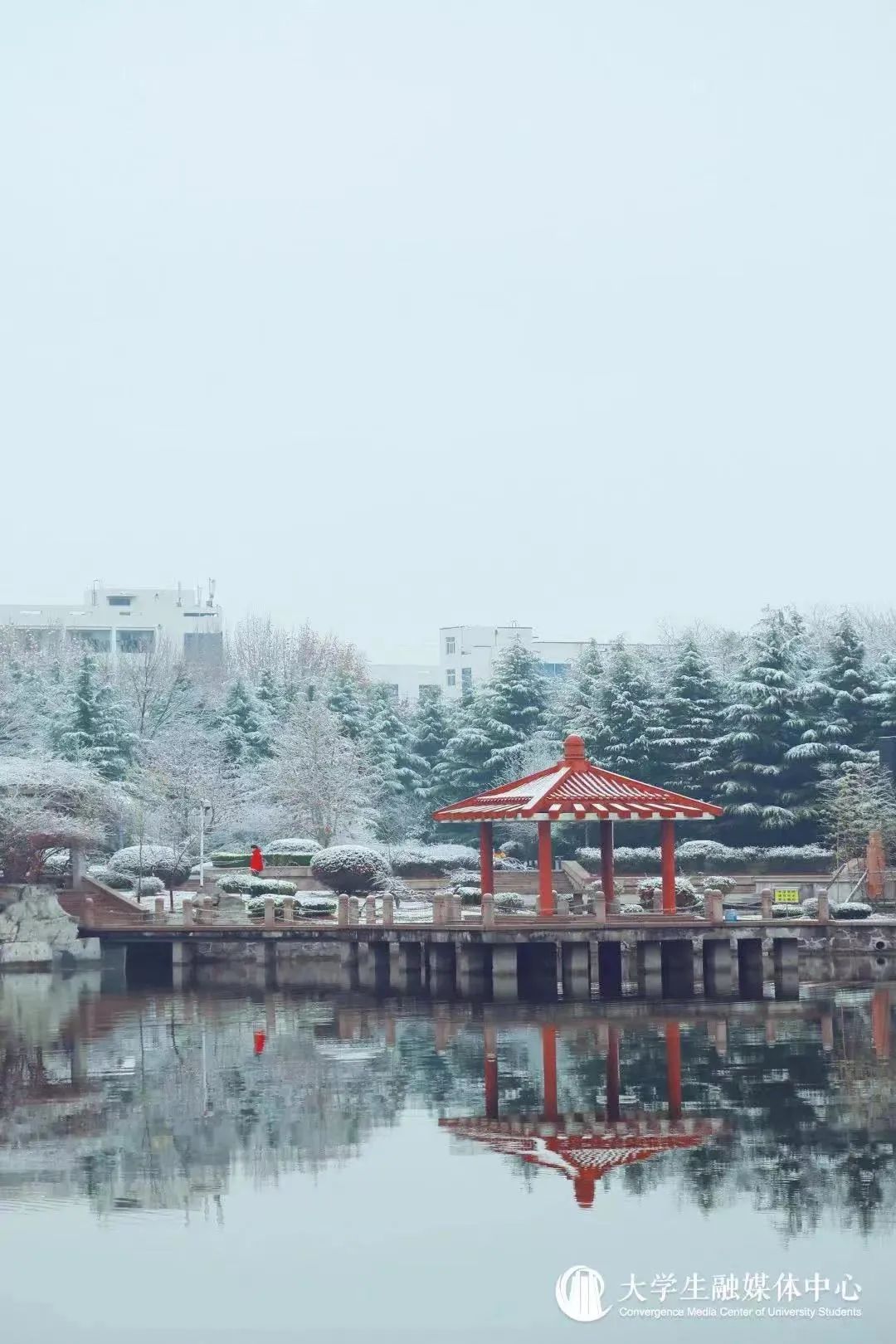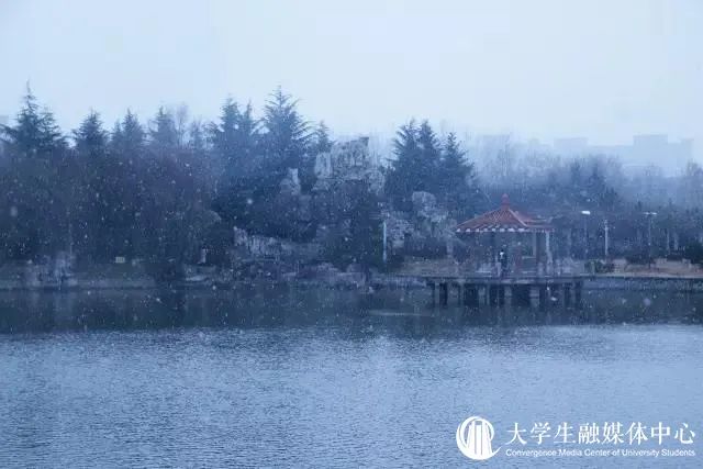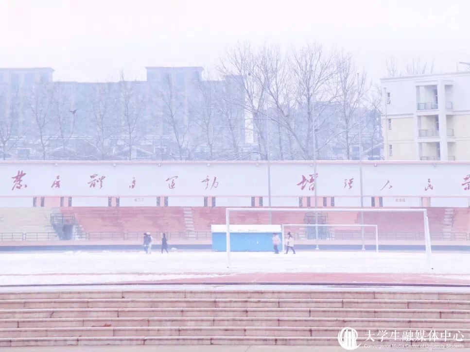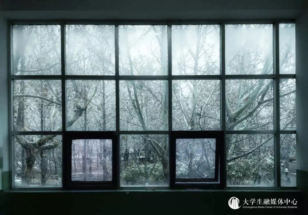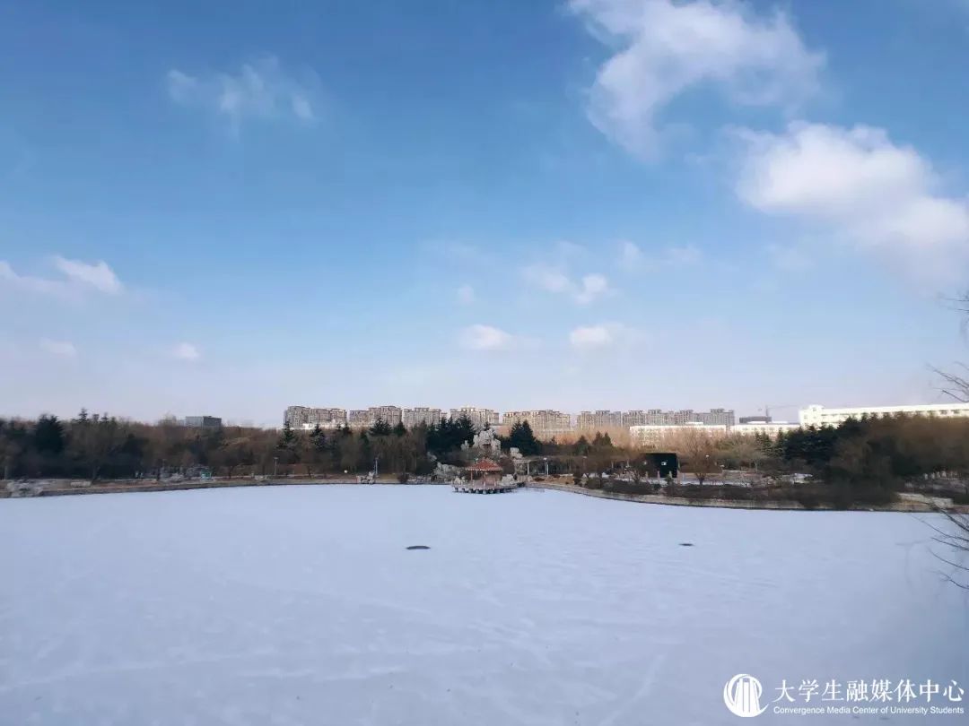 沉醉在冰雪晶莹的校园中
