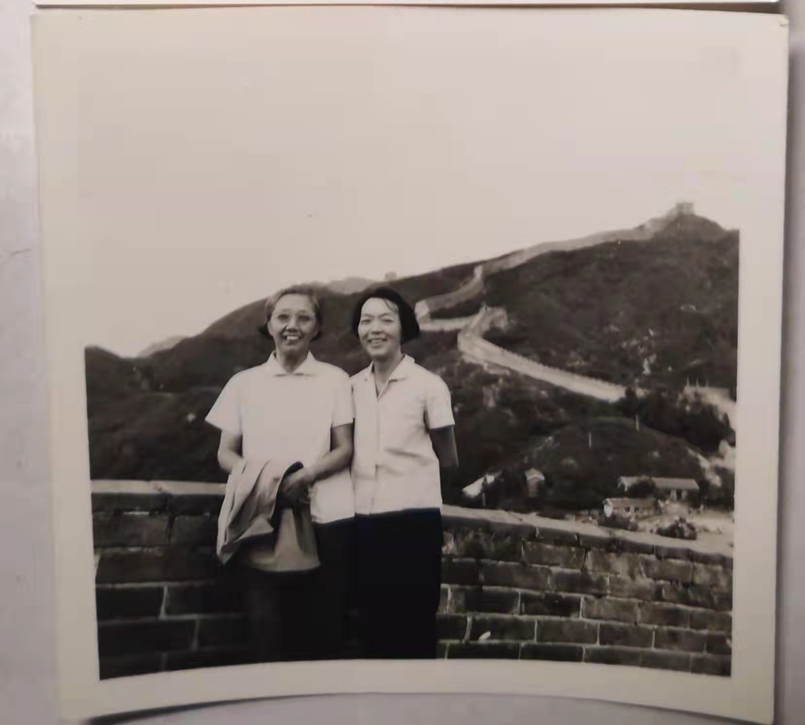 张复生(左)张苏生(右)姐妹,摄于1960年代初期八达岭长城。