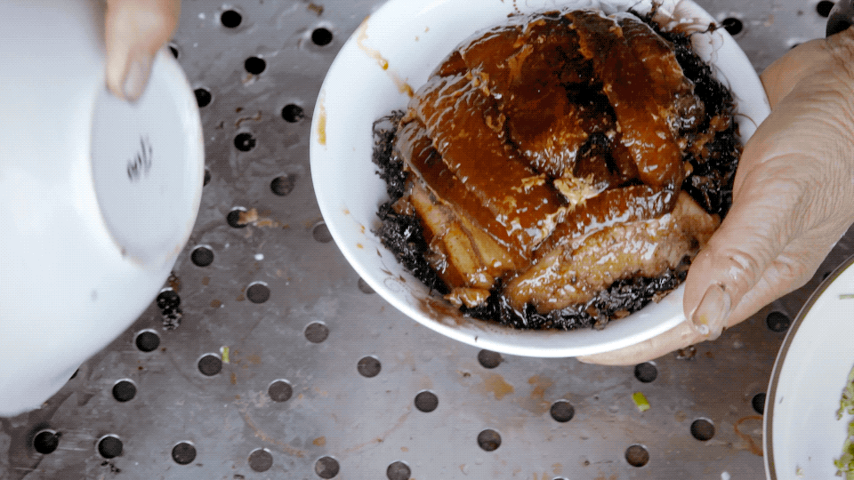 这样做出来的走油肉,一端上桌就能闻到浓郁的肉香,乌黑发亮的走油肉不断颤动,好像在告诉你到底又多好吃。台台最喜欢的就是那层皮,酥而不腻,配上大米饭真是绝!07丨金针木耳扣鱼