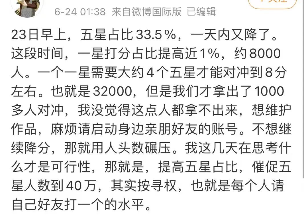 诚如阿北所说,在加权式的评分体系下,水军想要在豆瓣刷分相对困难。但他显然低估了饭圈的庞大,以及粉丝们“为爱发电”的高度执行力。