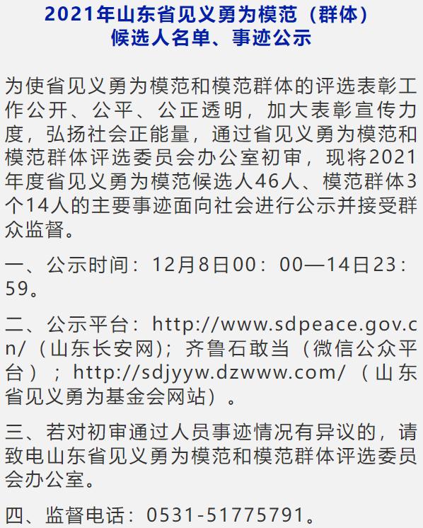 2021年山东省见义勇为模范(群体)推荐人员名单