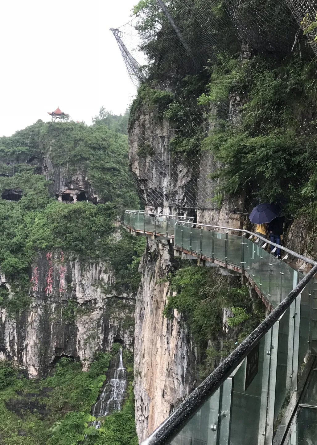 丹砂谷道为朱砂古镇970公里“地下长城”矿洞遗址景点的统称。其中包含的大小景点近20处,包括:时光隧道、水墨丹青、仙女石、悬崖玻璃栈道等景点。