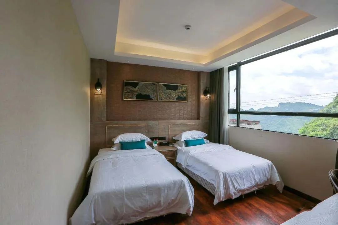 酒店客房分为四星和五星标准,客房总计200多间。四星级客房依山而建,透过窗户眺望可以欣赏到迷人景色及远处绵延的群山,令您全方位地感受悬崖风景,酒店内的设计亦与自然条件结合。