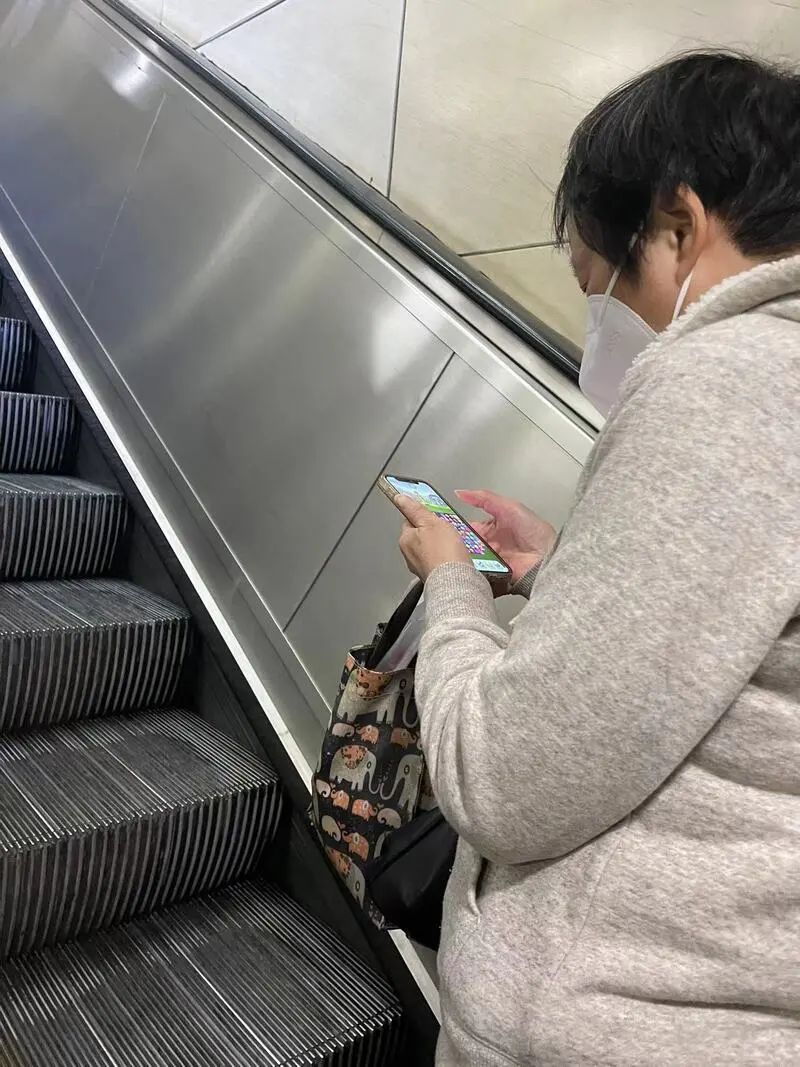 这位阿姨坐地铁乘电梯时还不忘打两盘游戏。社交平台的“算法”深谙人性,很容易让人上瘾,青少年逃不过,难道老人就能逃得过吗?在一家文化事业单位工作的朱涛发现,73岁的老妈最近成了手机控,一没事就捧着手机刷。白天她把孩子送去幼儿园后,买完菜就赶紧回家,然后玩几个小时手机。晚上吃了饭后,直接坐在沙发上刷小视频,一坐就是两三个小时不挪窝。