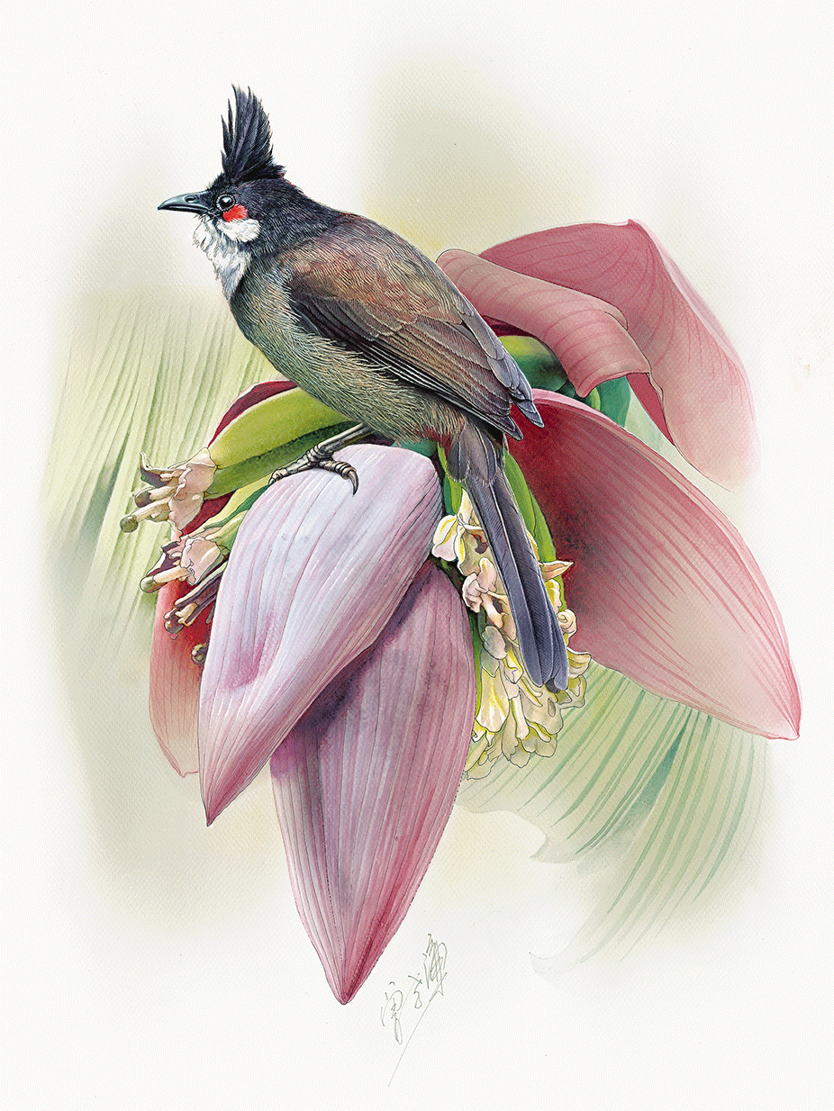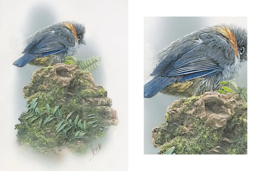 也是跟画植物一样的“笨功夫”。他在北京动物园住过大半年,每天到鸟园观察鸟的姿态,画速写,拍照片,又去昆明动物研究所的标本馆详细记录各种鸟的形态特征,同鸟类专家请教……