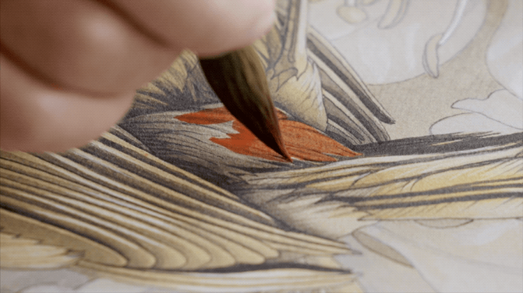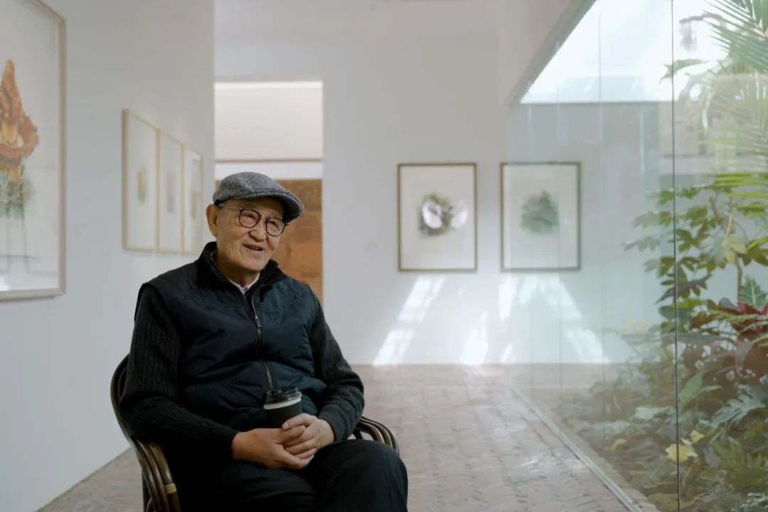 在我们的摄影机打开前,他已经完全进入了自然的世界,头戴着放大镜,坐在窗前,以毛笔透澈的笔画,一遍遍地叠加。房间里寂静无声,就这样过了半小时,一小时…….