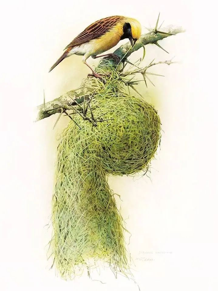 黄胸织雀,绘于1994年擅长织巢,是“鸟类中的建筑师”