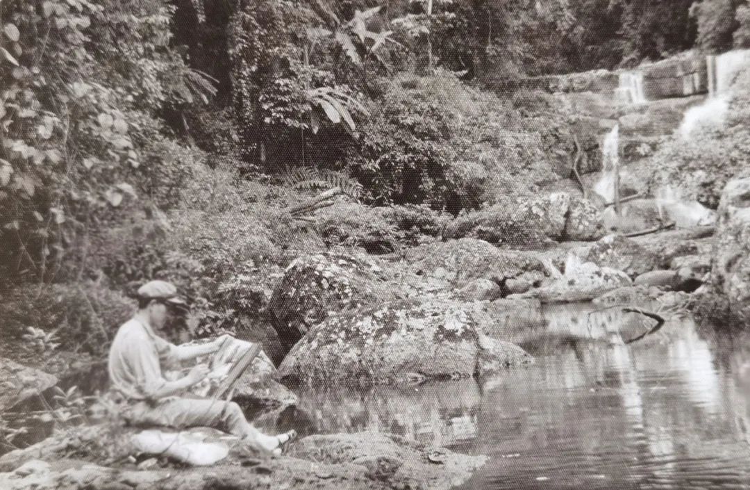 曾孝濂早年在雨林中写生他没有跟我们提到当年条件有多艰辛,只翻出一张难得留下的照片:他独自一人坐在溪边写生,仿佛已完全融入了自然。曾孝濂说,“那五年是我人生的一个转折点,真正认识大自然,就是从那时候开始。”
