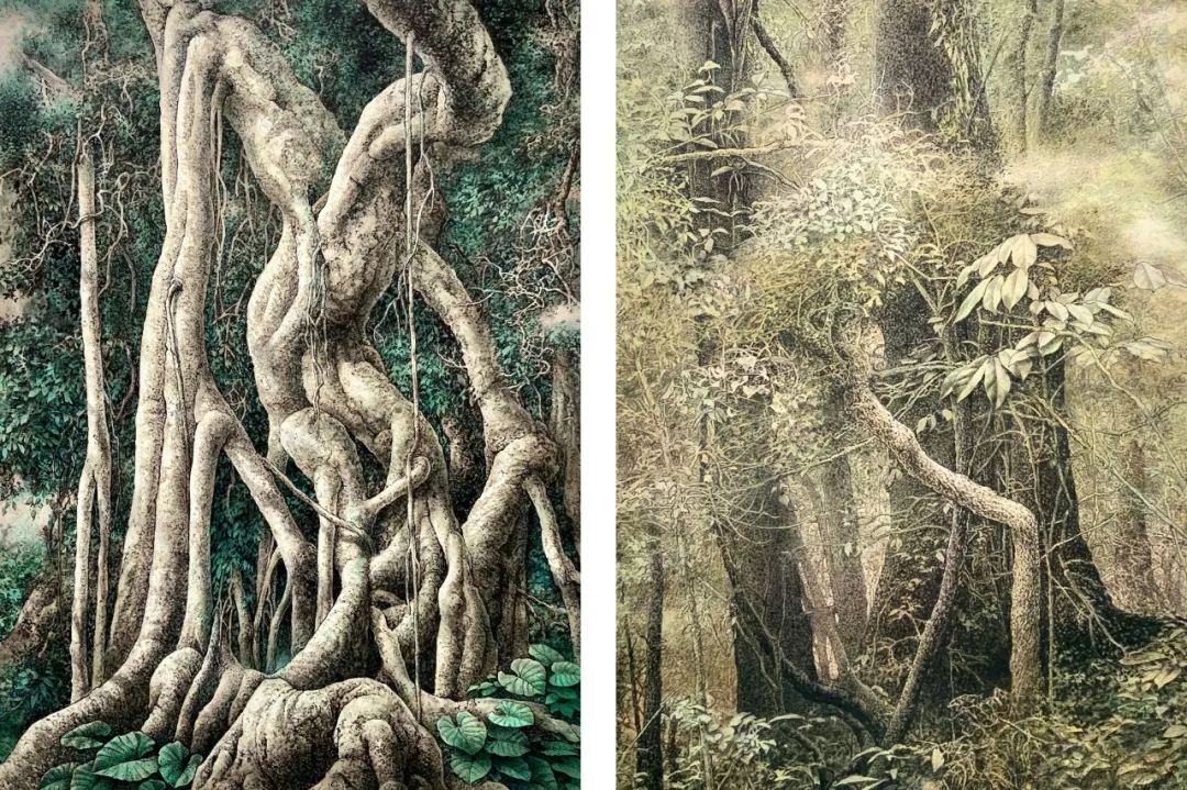 长时间地感受过这种丛林里的生命力,他再看标本,再看自己的绘画对象,总把展现生命力,看得很重,奋斗目标就是“要恢复出它们的生命状态”。