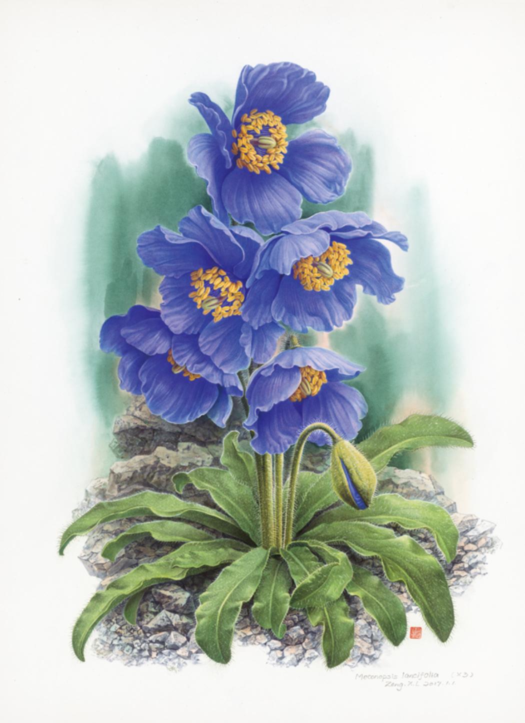 长叶绿绒蒿“每一种花都有自己的招数,是一种强烈的生存意识的表现,最鲜明、最奇特,有时候真的超乎人类的想象。”他在尽力把植物对生存繁衍的渴求,画出来。