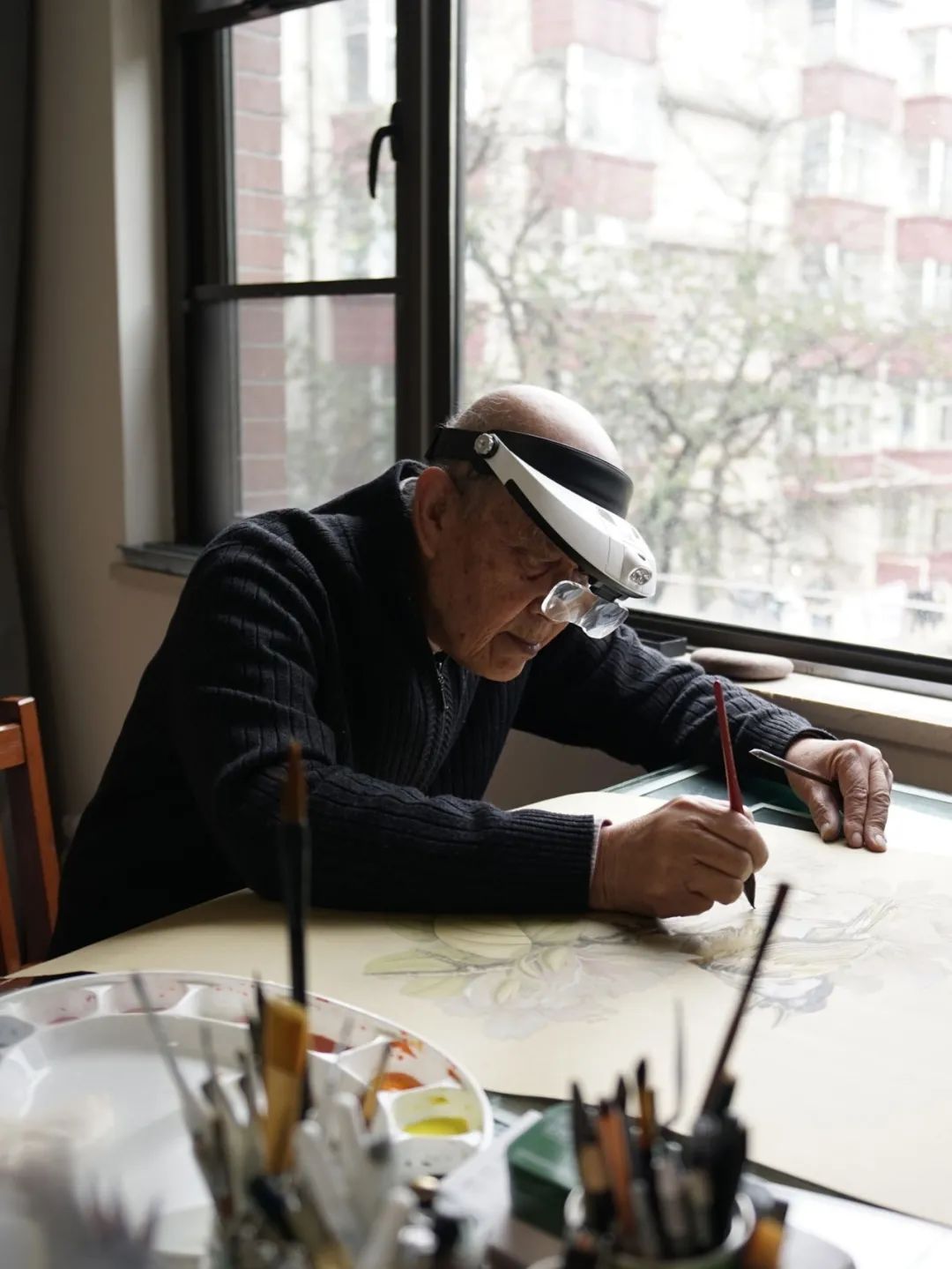 他一画就是半天、一天,像进入心流一样,几十年如一日。