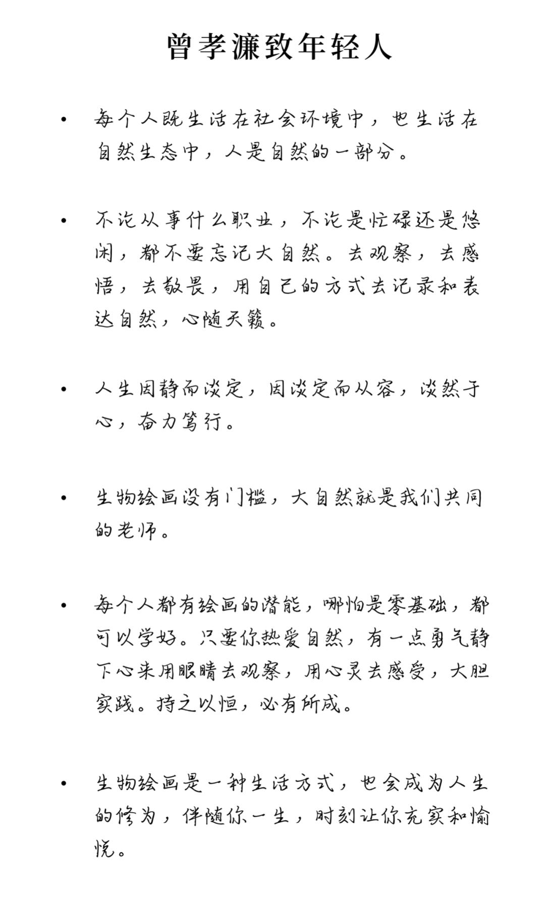 曾孝濂没有一点艺术家架子,觉得生物绘画就是“大众的艺术”。每个人都能欣赏,每个人都能尝试,是一种非常好的“人和自然对话沟通的形式”。