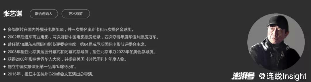 当红齐天能够吸引众多资本入局,得益于背后的创始团队。连线Insight查阅资料发现,当红齐天的多位创始人都有电影、晚会等相关从业经验。除了知名导演张艺谋担任当红齐天的联合创始人和艺术总监外,从当红齐天官网可以看到,其创始人齐笑曾担任过2008年北京奥运会开幕式《画卷》的制作人,联合创始人王磊担任过《鬼吹灯-寻龙诀》《龙门飞甲》等电影的视觉特效监制。