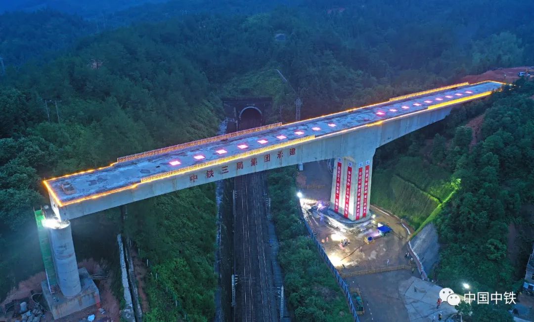 ▲中铁三局承建的赣深高铁全线跨度最大、最重的T构转体桥