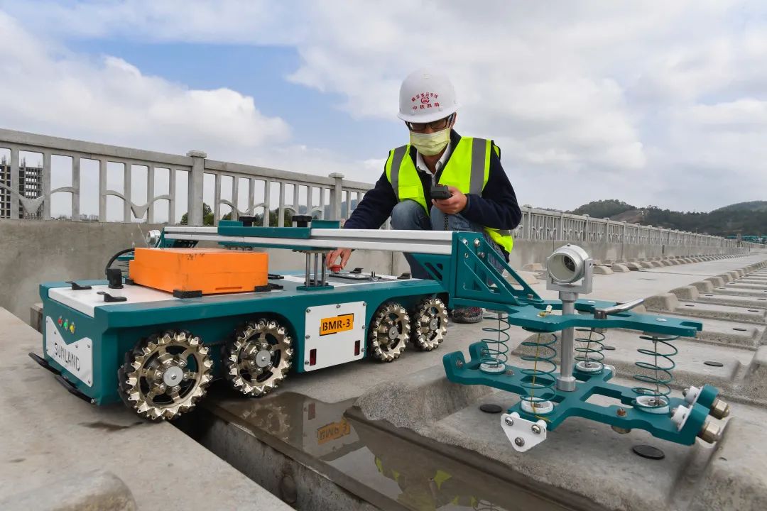 ▲中铁四局研发应用的BM-3型承轨台检测小车