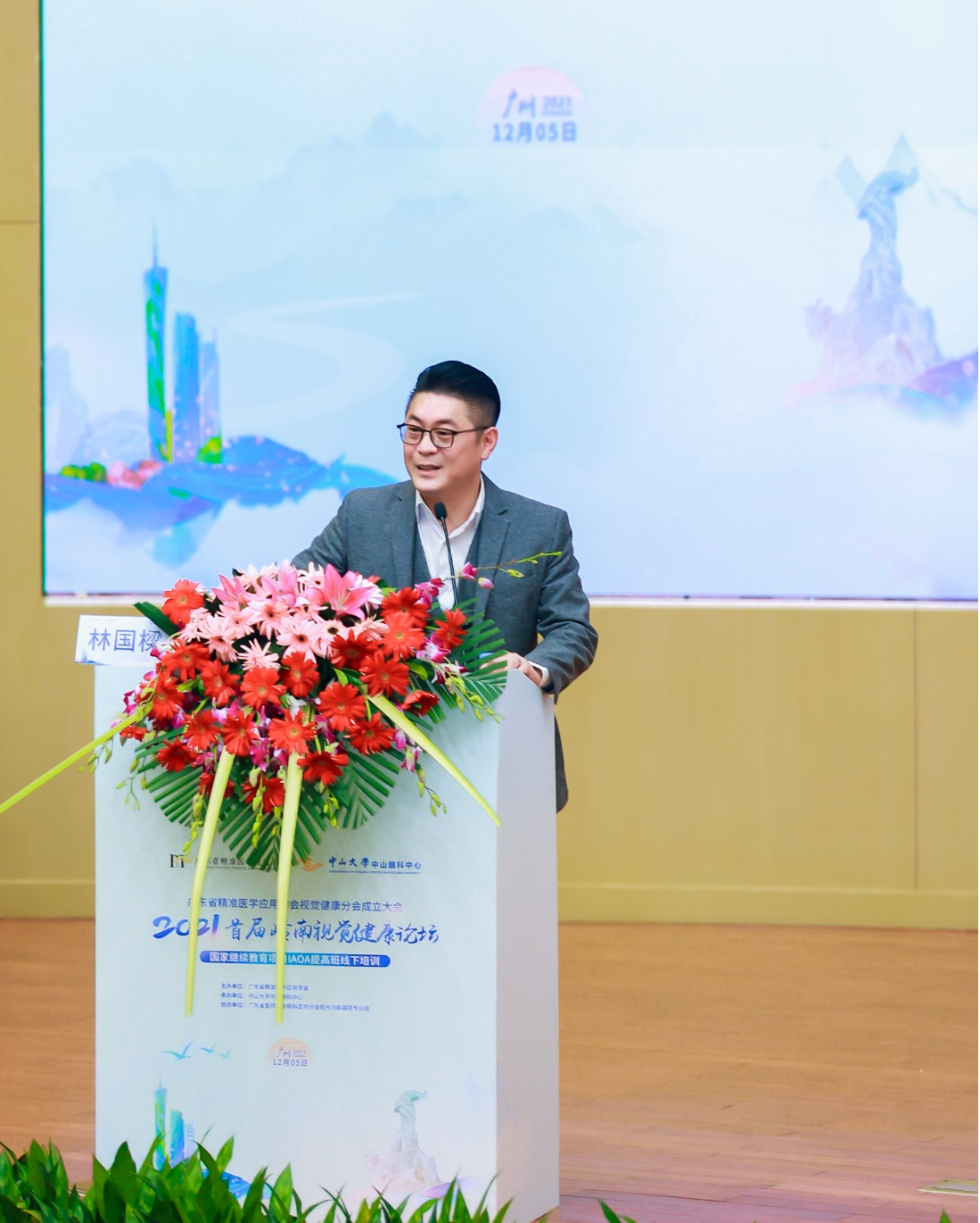 视觉健康分会作为广东省精准医学应用学会正式成立的分支机构,由中山大学中山眼科中心屈光与低视力科杨晓教授牵头发起成立,发起人包括中山大学附属第一医院万鹏霞教授,广东省人民医院眼科曾锦教授。视觉健康分会立足于推动视觉健康领域精准医学应用,汇聚了近视防控、视觉康复等相关领域的技术力量, 未来拟以视觉健康为出发点,利用大湾区与岭南的地域优势,进一步构建视觉健康的的国际化建设,并加强精准诊疗的实践应用,提高科学研究成果的技术转化,建立新技术新方法的技术标准,推动视觉健康科普。孙炳刚会长主持视觉健康分会成立仪式。