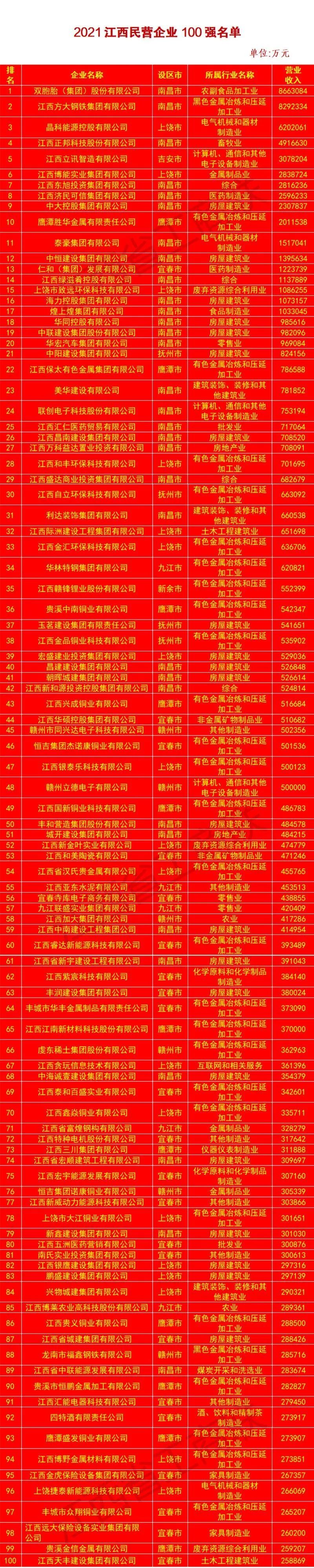 刚刚!2021江西民营企业100强公布(附名单)