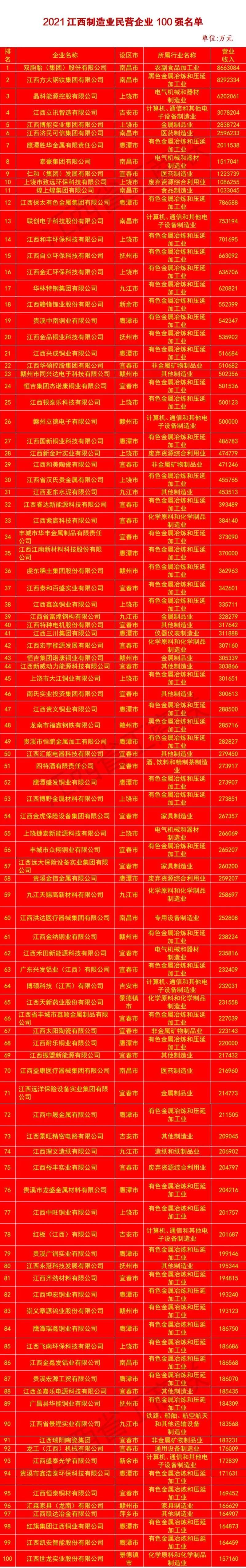 2021江西制造业民营企业100强