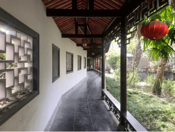 园内一幅兰墙壁画笔调细腻,展现了唐昌古时繁华热闹的场镇街景,让人感到悦目赏心。