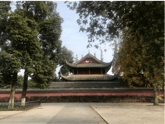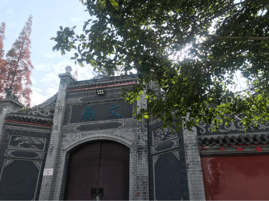 在原唐昌镇中学内坐落着一座文庙,曾为古崇宁县文庙,现存有大殿、泮池、泮桥。层层密密的绿荫,将历久弥新的文庙映衬得格外引人注目。