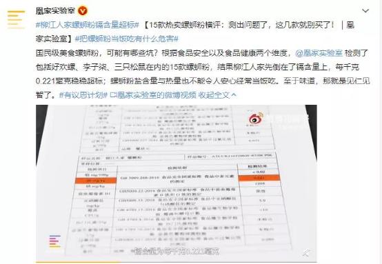 其实早在几天前,螺蛳粉就上过一次热搜。当时某评测机构对市面上售卖的15款常见螺蛳粉进行抽检,结果是其中一个品牌的螺蛳粉中镉含量超标了,为0.221毫克。