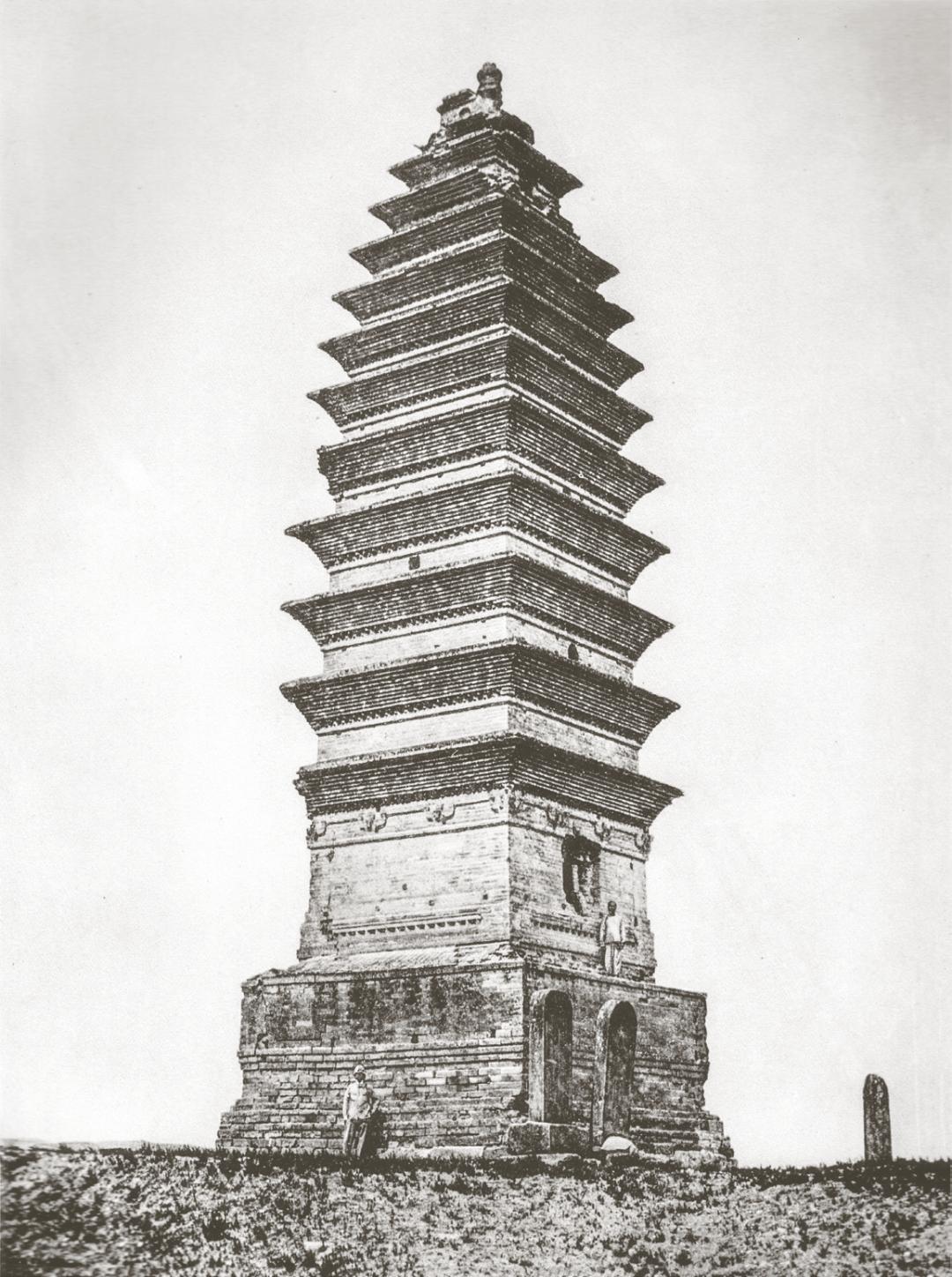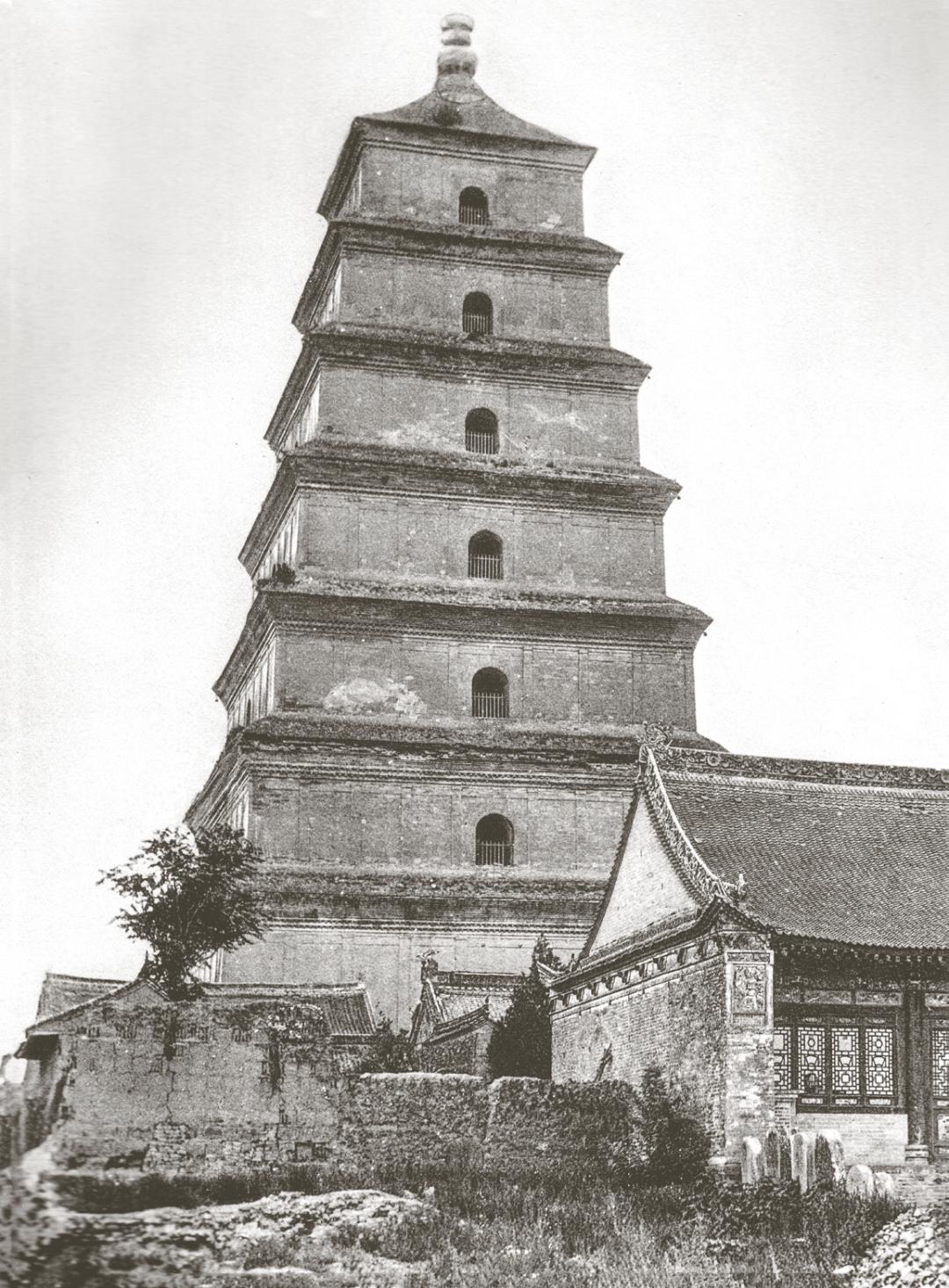 ▲陕西西安府的大雁塔。为方形级塔,初建于公元652年,现存建筑建于公元701—705年,高约60米宝塔虽为舶来品,这一佛教最高圣物的理念却在中国站稳了脚跟,甚至与中式风格完全融合在一起。这背后有内在因素。唯有如此才可以解释为什么中国人建造了如此多的宝塔,并成功地为那些独自立于低矮的佛寺院落中的塔楼设计出一种独树一帜、具有完美的建筑学特性的构造——其类型千变万化,且大多古典纯正。