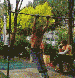 有的足够硬核,比如公园里健身的老大爷们,用极高难度的动作震慑着围观路人的心灵。