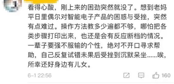 看到这些新闻时,有人想起了自己的妈妈,说妈妈对智能产品经常产生困惑,但因为要强的性格,绝不开口求助,但在反复试错后陷入沉默