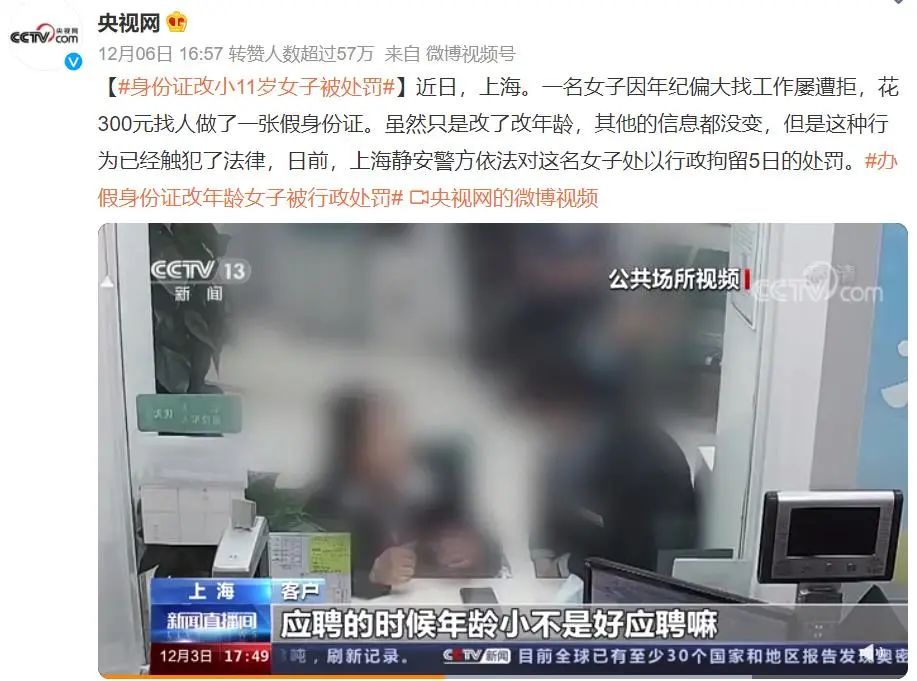 不久前,有人为了求职,特意伪造了身份证,将自己的年龄改小了11岁,希望提高面试成功率。