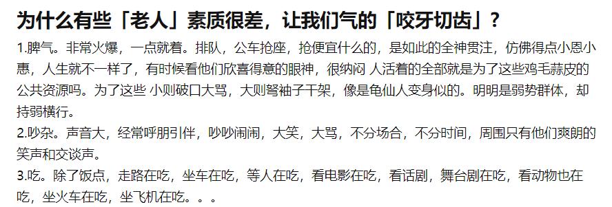 总之,这个时代一边同情老年人,同时也容易产生一些负面印象、嫌弃甚至厌恶的感受▼