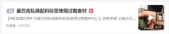 昨日,#星巴克私换配料标签使用过期食材#和#星巴克频繁触碰食品安全红线#2个话题登上热搜。