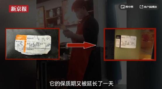 而为了防范检查,店员还会将保质期标签直接撕掉。在暗访镜头里,过期的红茶液、奶油等,都被撕掉了保质期标签。同时对于临近保质期的食材,店员也会篡改保质标签,并表示“师父带徒弟都是这样带的,无所谓。”