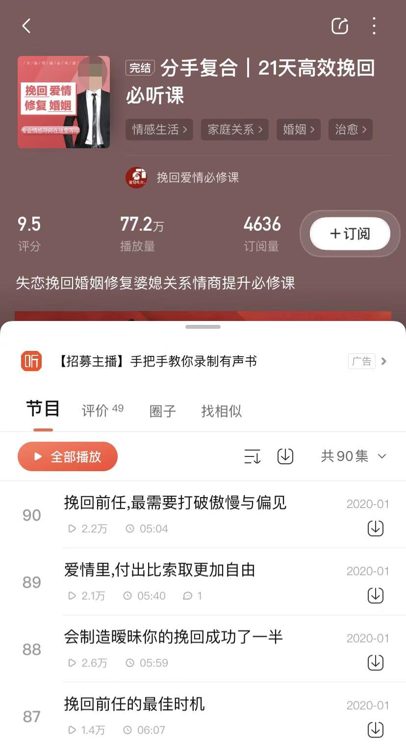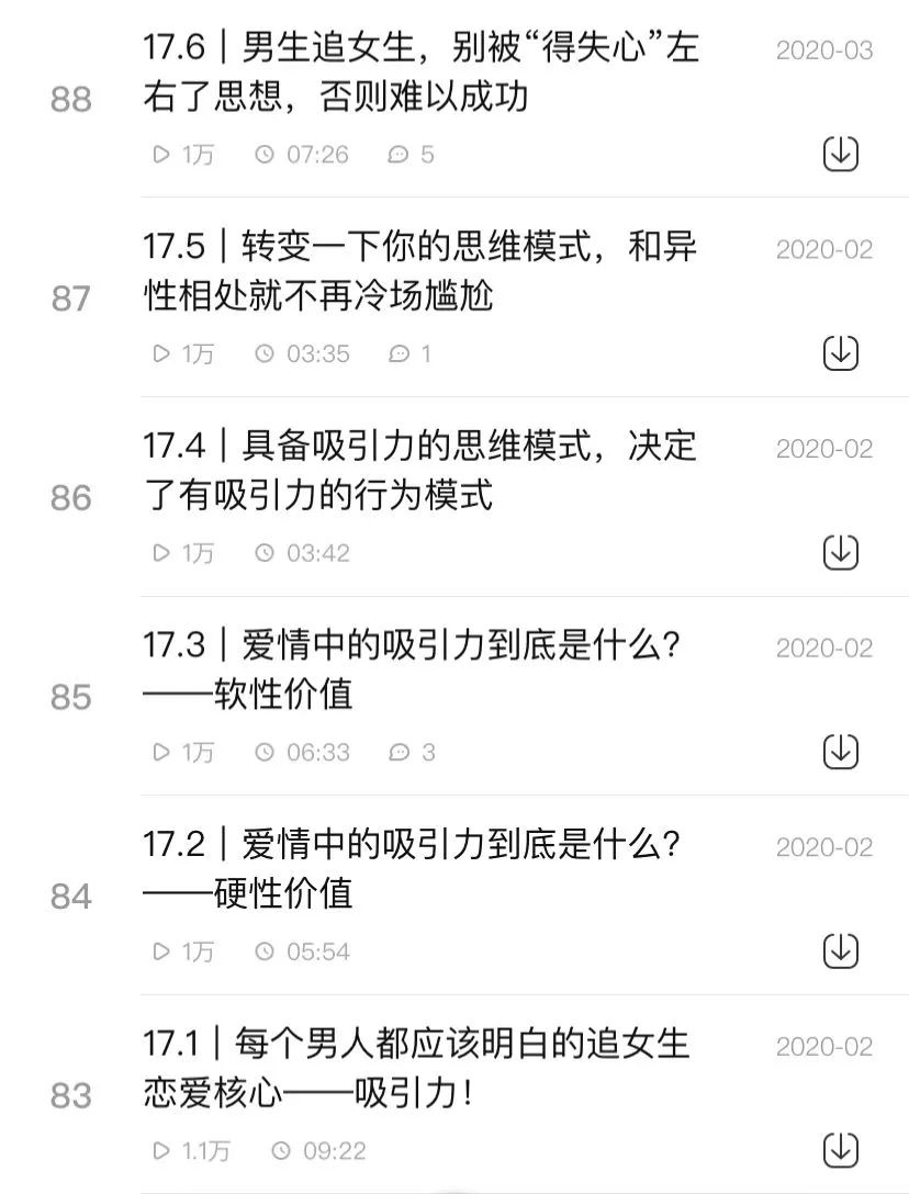而搭上“知识付费”便车的恋爱课,虽然某种程度上抚慰和解答了年轻人的婚恋焦虑和情感困惑,抛出的一些问题也能引发年轻人的反思,对正确婚恋观的树立有一定帮助,但很多课程还是通过制造年轻人的婚恋焦虑变现,用着和已经凉凉的财商课一样的路数,老镰割新韭。