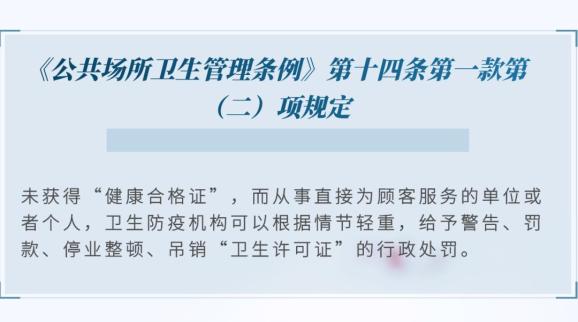 相关行业经营者要让员工按规定办理健康证,持证上岗,否则将依法予以处罚。