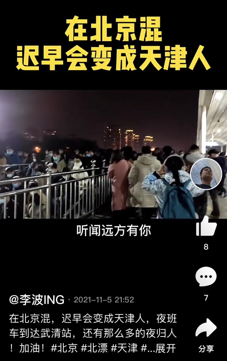 深夜,李波创建的京津通勤群里,消息还在冒个不停……有人发了一张短视频截图,感慨在杭州天津之间坐飞机通勤的小伙太拼。