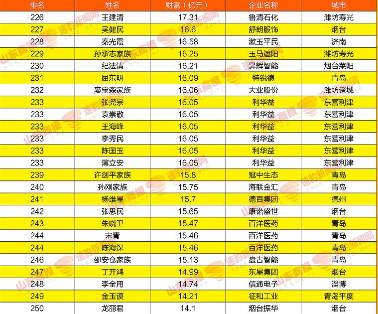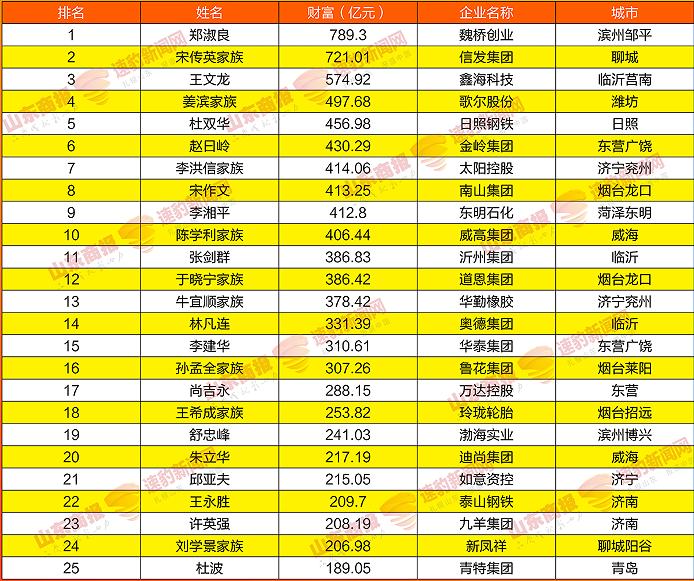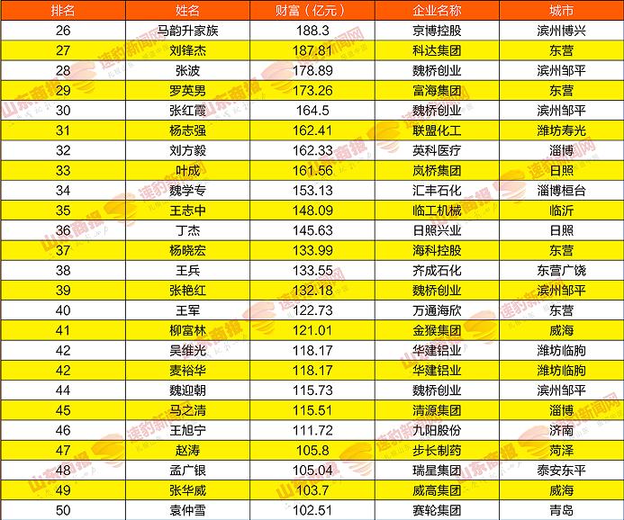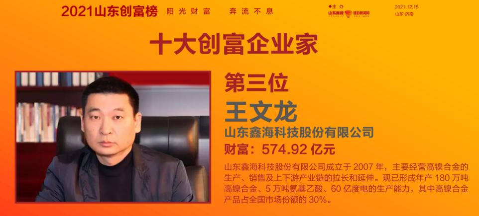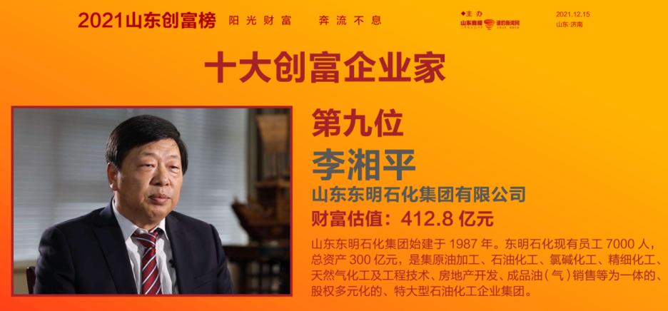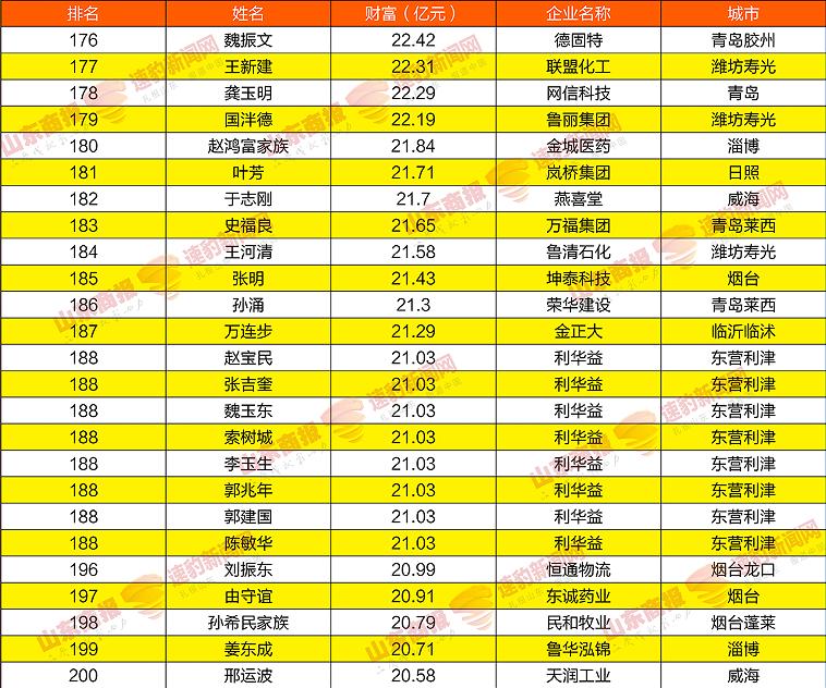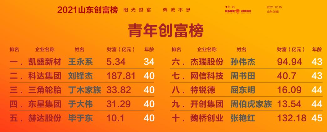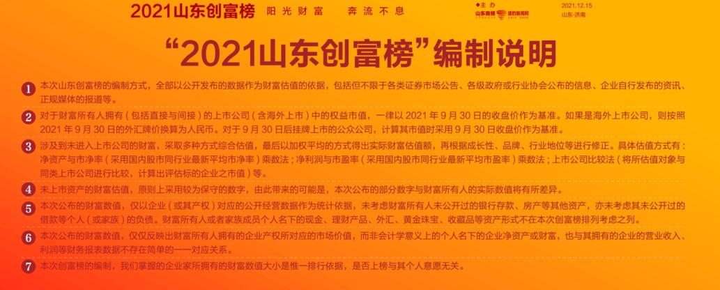 2021山东创富榜发布!魏桥郑淑良全省第一,16市第一分别是他们