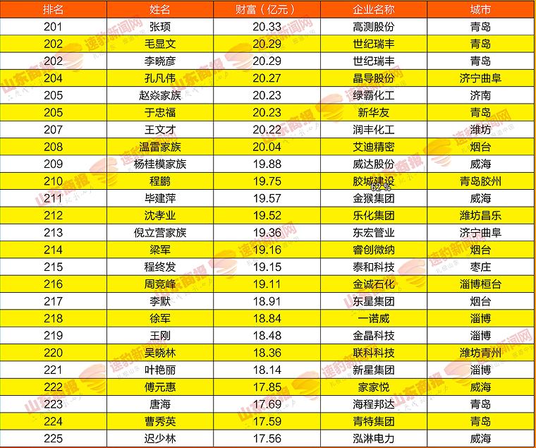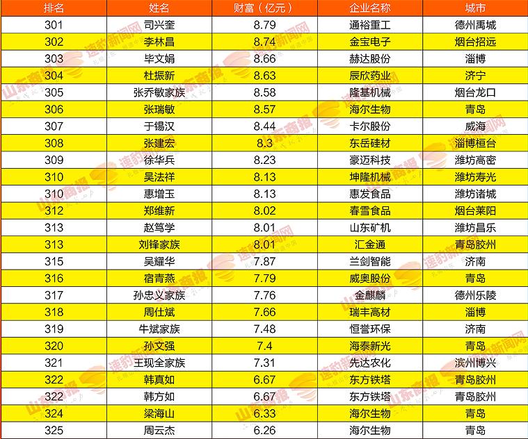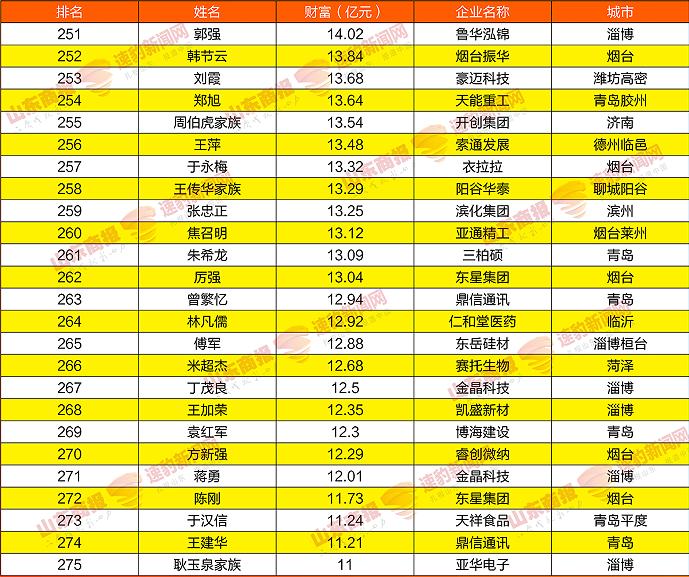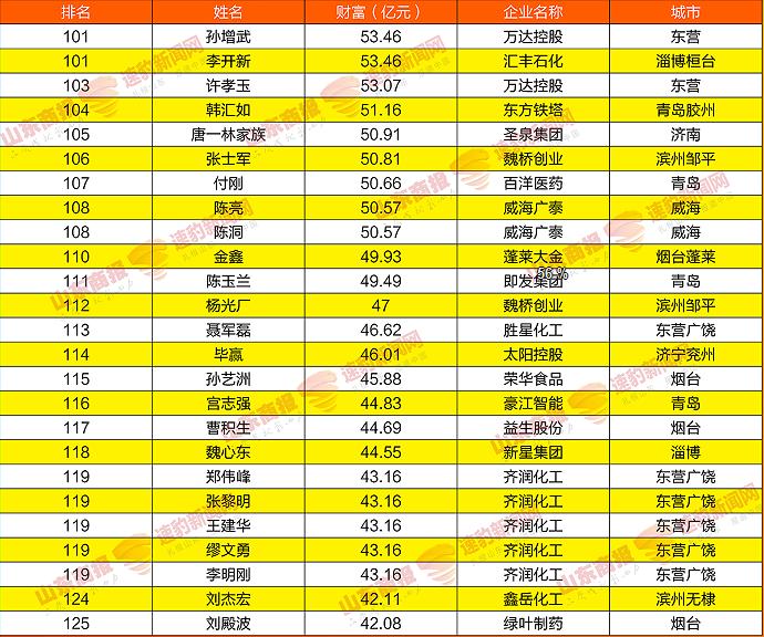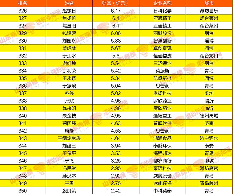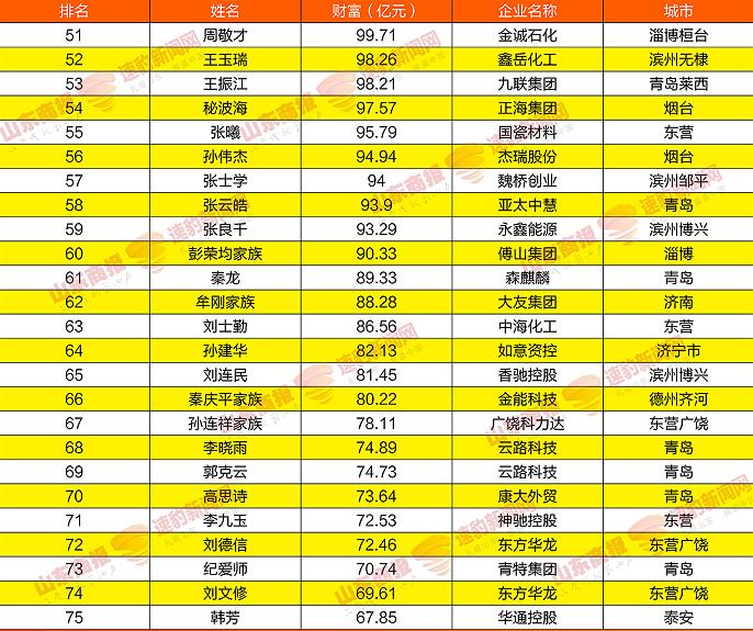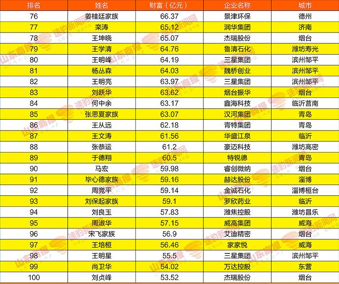 2021山东创富榜发布!魏桥郑淑良全省第一,16市第一分别是他们