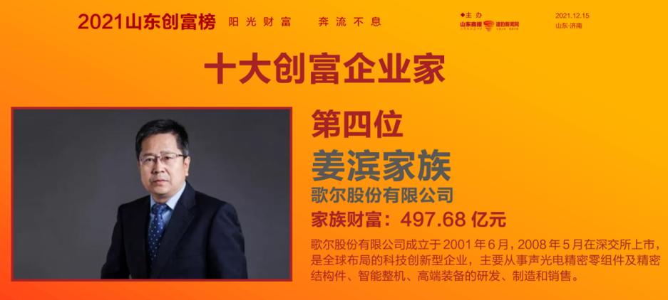 潍坊为歌尔股份的姜滨家族