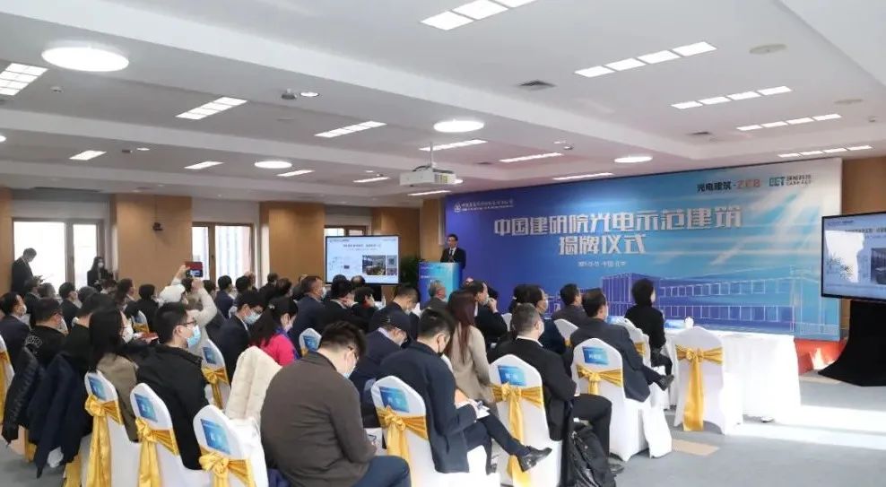 中国建研院相关职能部门、二级单位负责同志参加会议。中国绿发集团、中海集团、日出东方、格力电器、龙焱科技、中创碳投、四季沐歌、中建三局等合作企业代表参加揭牌仪式并表示祝贺。中国建研院光电示范建筑介绍